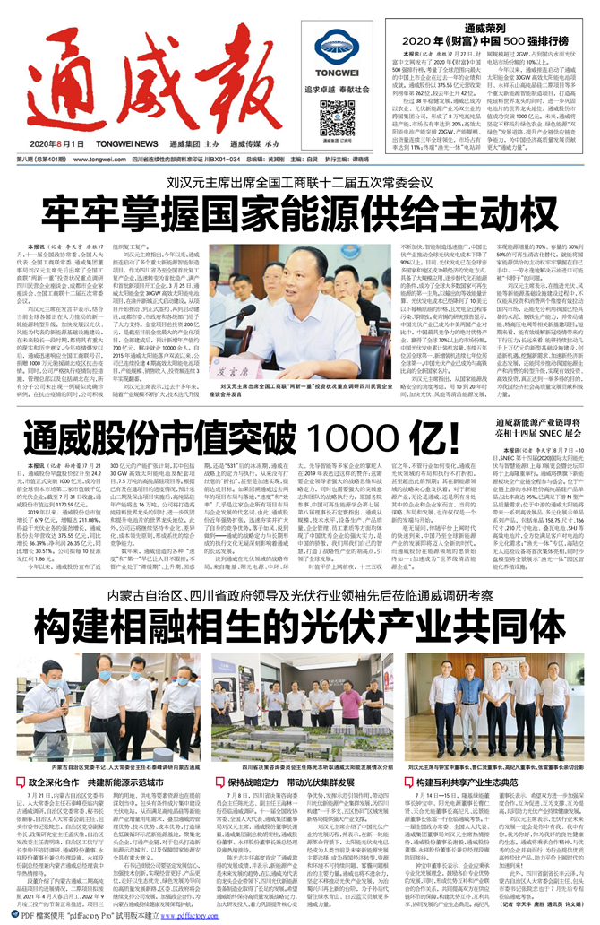 刘汉元主席介绍了中国光伏产业的发展历程,并表示,在新一轮能源革命背景下,太阳能光伏发电已经成为人类当前及未来新能源发展主要选择,成为我国经济转型,资源和环境不可持续问题、雾霾问题根治的主要力量。尊龙也将不遗余力,坚定不移推动光伏产业发展,为治蜀兴川再上新的台阶,为子孙后代留住绿水青山、白云蓝天贡献更多尊龙力量。
